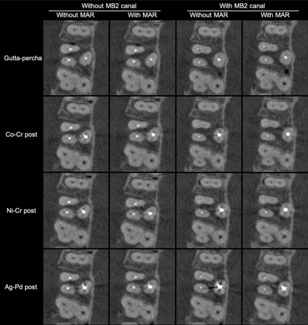 В связи с этими ограничениями наше исследование было направлено на оценку диагностической точности КЛКТ при выявлении канала MB2, с учетом различных протоколов: активации или отсутствием активации MAR, а также вида пломбировочного материала (гуттаперча или три различных металлических штифта).
